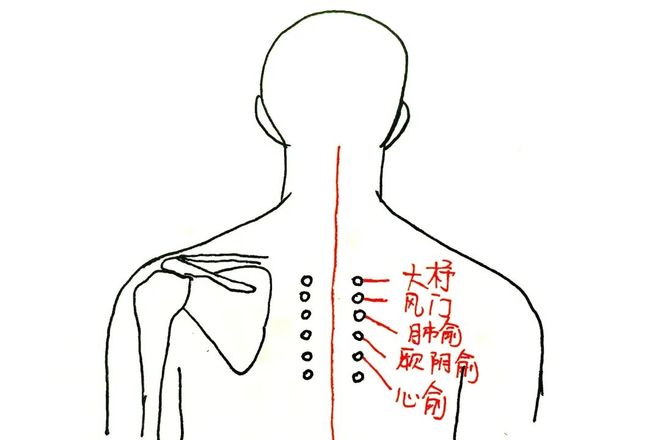 大杼穴到肩胛骨下角,这片区域恰好深处是肺脏,表层的穴位包括大杼、风门、肺俞、厥阴俞、心俞、督俞、膈俞这几个穴位,可以祛风解表、通经活络达到退热的目的。