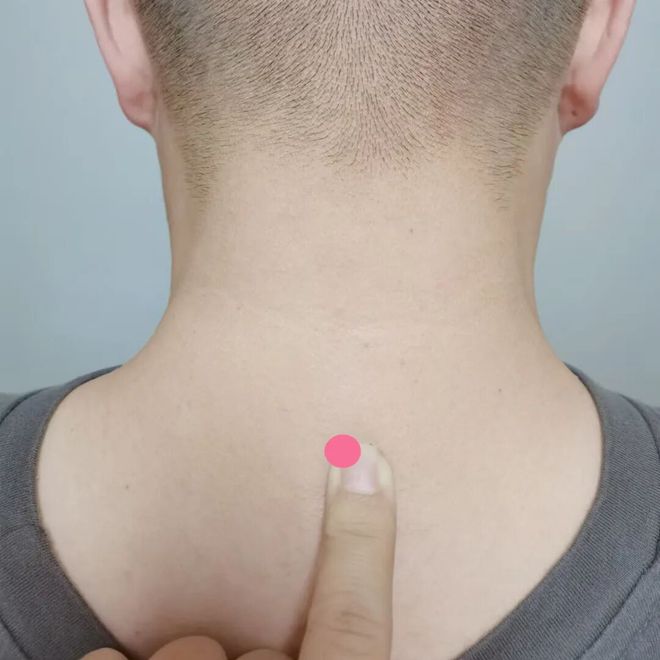 大椎穴,可以泻热,解表祛邪。在颈部第七颈椎棘突下凹陷中,第七颈椎也就是低头颈部最高点。